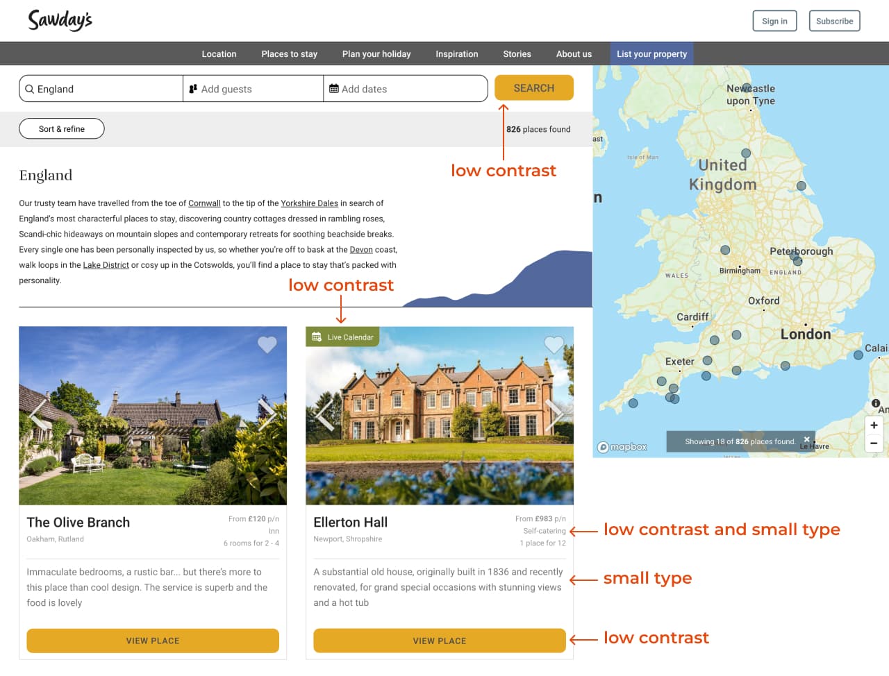 A quick website audit revealed low contrast between some of the text and background colors, as well as small type.